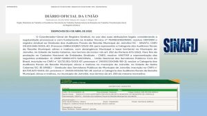 2 de maio de 2022No dia 05/04/2022, foi publicado no Diário Oficial da União, Edição 65, Seção 1, página 92, DEFERIMENTO do registro sindical do SINDICATO DOS AUDITORES FISCAIS DO MUNICÍPIO DE JOINVILLE – SINAFIJ, legitimando-o para discutir e debater os temas que envolvam, direta ou indiretamente, os Auditores Fiscais, sejam eles relacionados ou não aos direitos inerentes à Categoria.