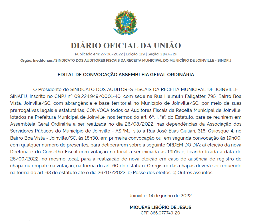 O Vice-Presidente do SINAFIJ participou, na manhã desta quarta feira, 10/08/2022, da reunião realizada na Presidência da ALESC, onde foi discutida a PEC que altera a […]