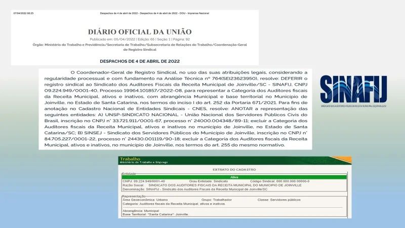 No dia 05/04/2022, foi publicado no Diário Oficial da União, Edição 65, Seção 1, página 92, DEFERIMENTO do registro sindical do SINDICATO DOS AUDITORES FISCAIS DO […]